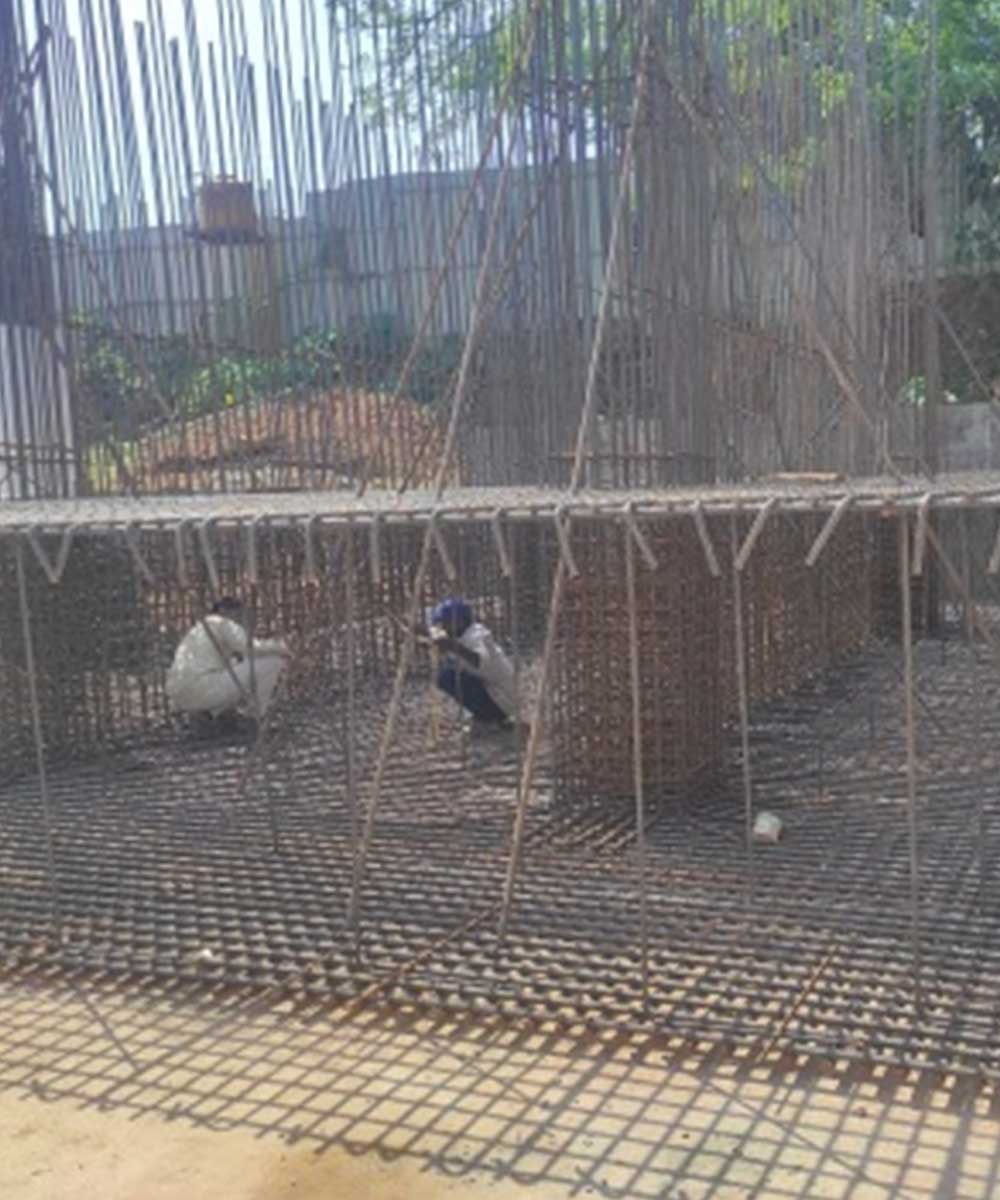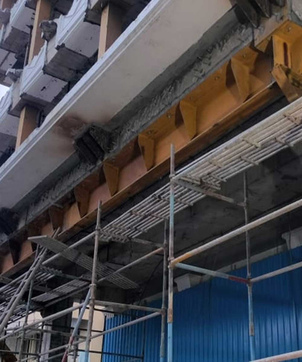 The existing columns lacked the required compressive strength, requiring reinforcement to meet structural requirements. Based on the structural designer’s recommendations, we are currently executing column strengthening using MS steel plates. This process ensures enhanced load-bearing capacity and long-term structural stability, making the building safer and more resilient.